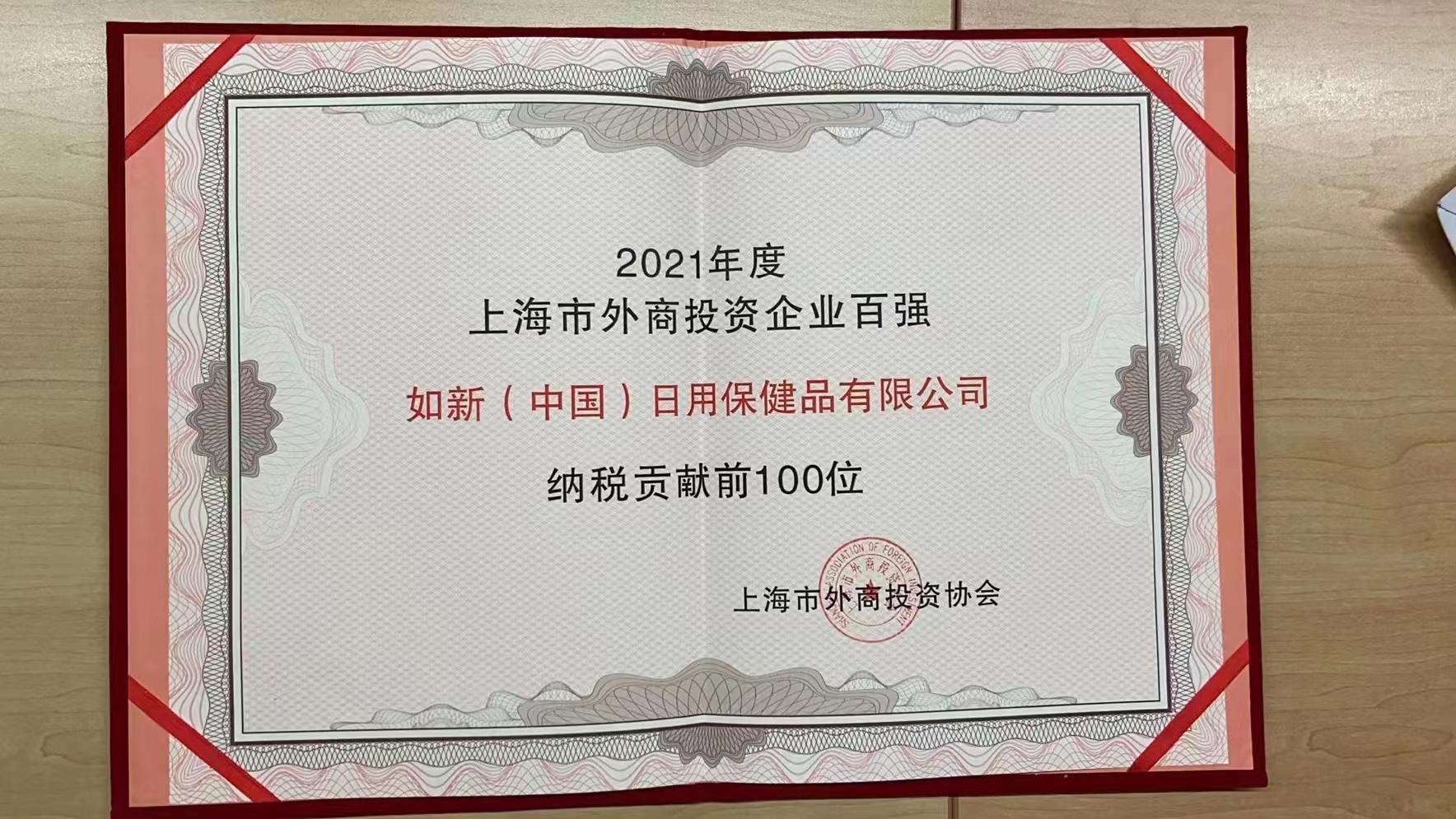 图:如新荣登2021上海市外商投资企业百强纳税贡献前100位