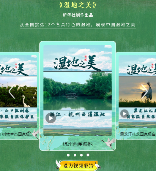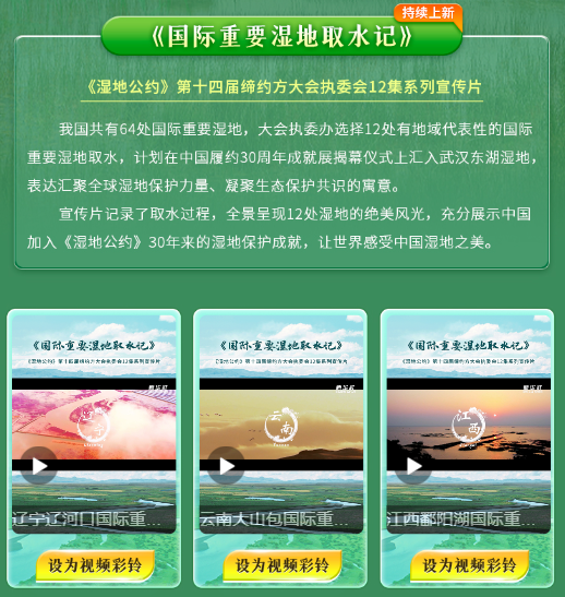 正值中国加入《湿地公约》30周年之际,中国联通视频彩铃倾情推出、新华社制作出品《中国湿地之美》精品主题彩铃,在通话等待间见证中国履约30年丰硕成果,与万千用户共享中国湿地之美。