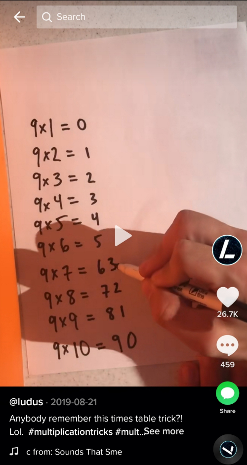 时间回到2019年,当时短视频行业风头正劲,TikTok席卷美国,迅速得到年轻人的欢迎。潮流的推动下,约书亚发布了他的第一个TikTok作品:教大家快速计算将数字乘以9。