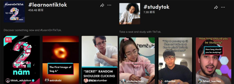 在TikTok上,知识和学习成为了重要的细分领域。学习也是TikTok上最受欢迎的主题之一。#StudyTok的话题,累计视频播放量已经超过73亿次,而“在TikTok上学习”(#LearnOnTikTok),目前视频播放量也超过了4580亿次。