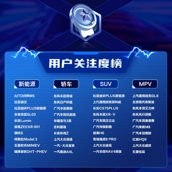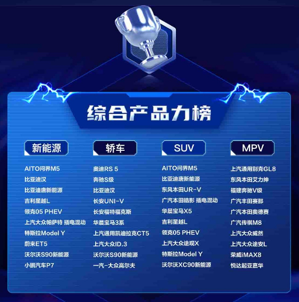 综合产品力榜由《易车实测》客观数据及汽车行业顾问专家主观评分产生,客观呈现各品牌车型综合产品实力,专家评价维度覆盖了车辆性能、操控、舒适性、续航等多维度;用户关注度榜则基于易车车型关注度、车型热度以及车型点评三个维度综合评分产出,呈现本年度最受易车用户青睐的十大车型,评奖范围覆盖目前各品牌所有在售车型;专家推荐榜基于易车App大数据,综合市场分析、品牌洞察、人群触达等多维度内容,结合易车指数等相关数据,依托易车超级评测体系客观完整呈现本年度综合表现突出车型;热门车保值榜由易车&精真估&中国汽车流通协会三家联合发布。此榜单根据易车指数中各分类下的TOP50选取车型,并以保值率作为排名依据。保值率计算方式为:二手车交易价格/新车指导价(数据使用周期为2022年1月1日至2022年11月30日)。