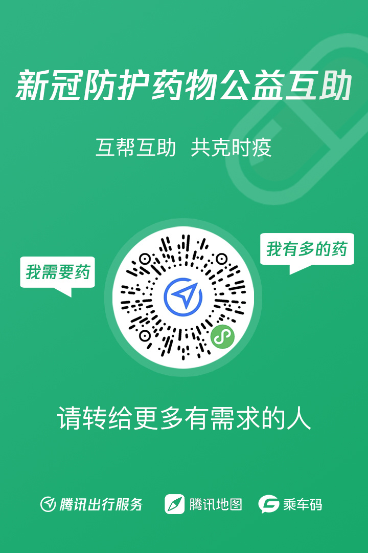 为响应各地方政府单位鼓励公众共享药品的倡议,腾讯出行服务和腾讯地图快速上线了“新冠防护药物公益互助平台”,助力民众之间更加高效的进行“余药共享”。
