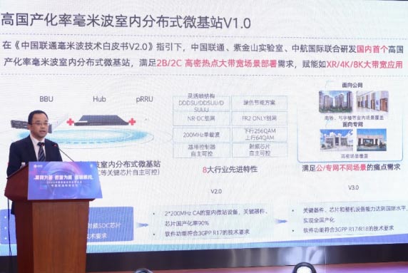 联通研究院院长李红五发布高国产化率毫米波室内分布式微基站V1.0