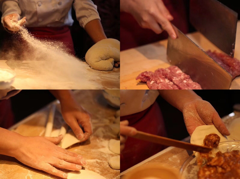 狗不理包子的制作技艺被列入“国家非物质文化遗产名录”。图为师傅们在手工制作狗不理年货产品。
