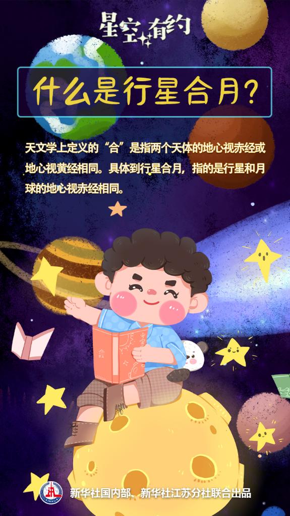 中科院紫金山天文台科普主管王科超介绍,要解开合月的奥秘,首先要知道什么是“合”。王科超说,天文学上定义的“合”并非两个天体真的合并在一起,而是指两个天体的地心视赤经或地心视黄经相同。具体到行星合月,指的是行星和月球的地心视赤经相同。除了行星合月,还有恒星合月、行星合恒星、行星合行星等。