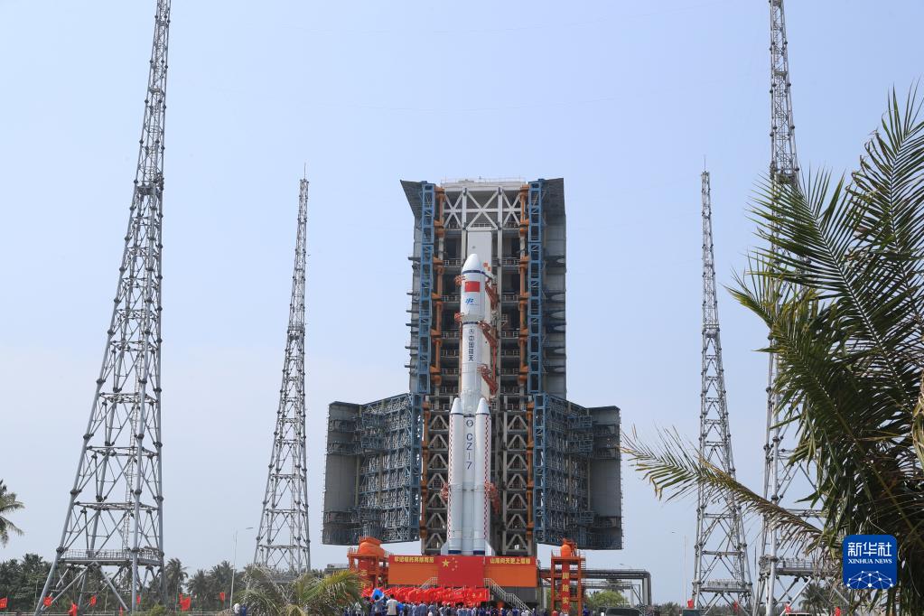 新华社海南文昌5月7日电(李国利、邓孟)天舟六号货运飞船与长征七号遥七运载火箭组合体5月7日垂直转运至发射区,计划于近日择机实施发射。