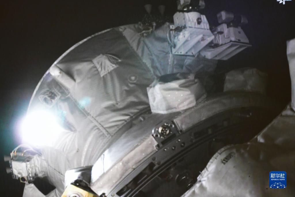 5月11日在北京航天飞行控制中心拍摄的天舟六号货运飞船向空间站组合体靠拢的画面。新华社记者 郭中正 摄