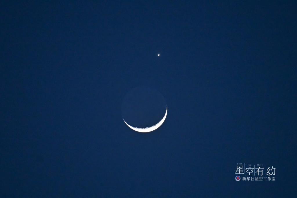 这是2023年3月24日在北京拍摄的月掩金星。新华社记者李鑫 摄