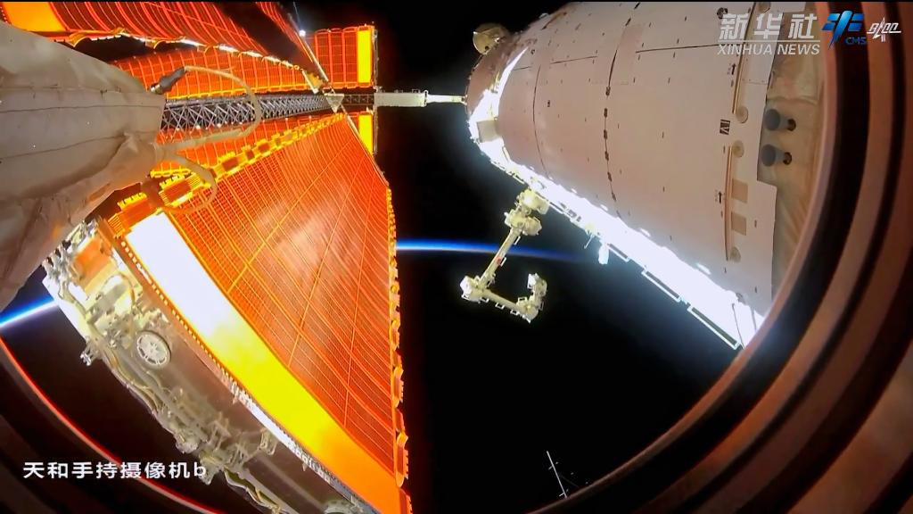 洁白的空间站舱壁、明亮的太阳翼以及清澈的蓝色地球让人心驰神往。航天员们虽然生活在空间站的一方天地里,但透过舷窗,却能看到星辰日月的光辉洒在空间站上,映衬出皎洁的流光。这美丽的场景通过航天员的镜头,与我们分享。