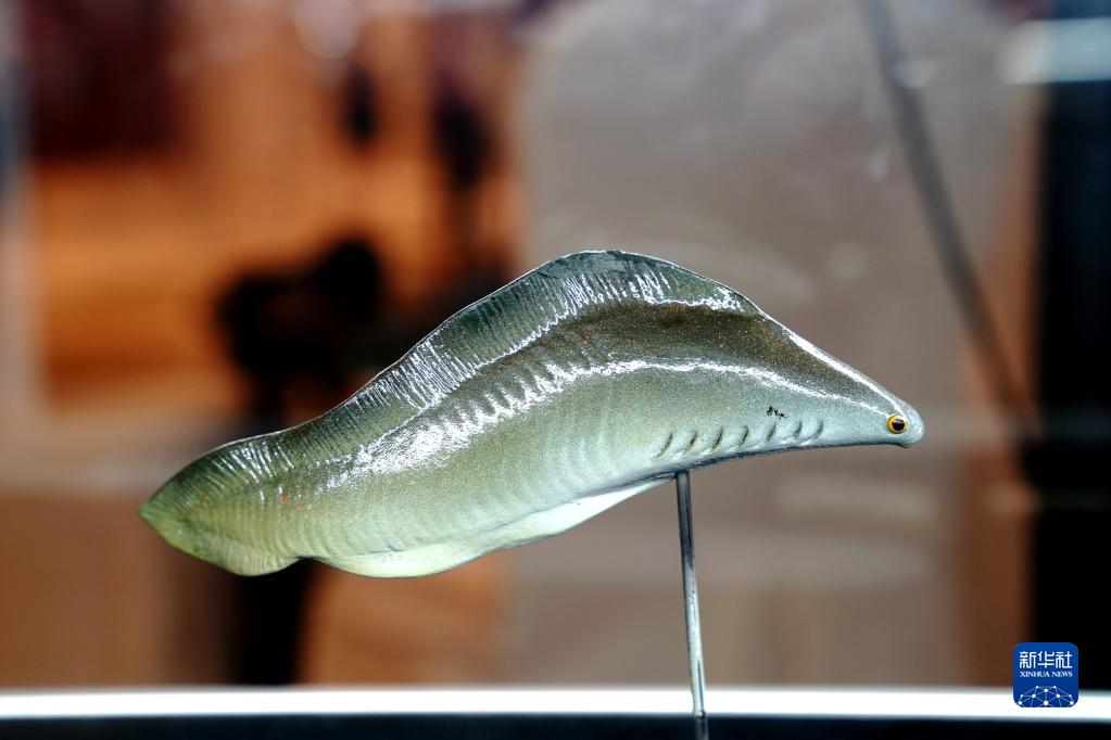 7月5日在第七届地球系统科学大会上拍摄的介绍海口鱼的展品。