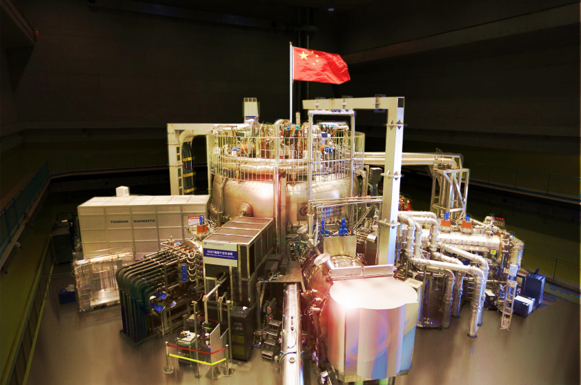 高11米、直径8米,顶端飘扬着五星红旗,这是中国的“人造太阳”—全超导托卡马克核聚变实验装置(EAST)。中国科学院合肥物质科学研究院4代科研工作者、12万多次实验,支撑起中国“人造太阳”的强大内核。