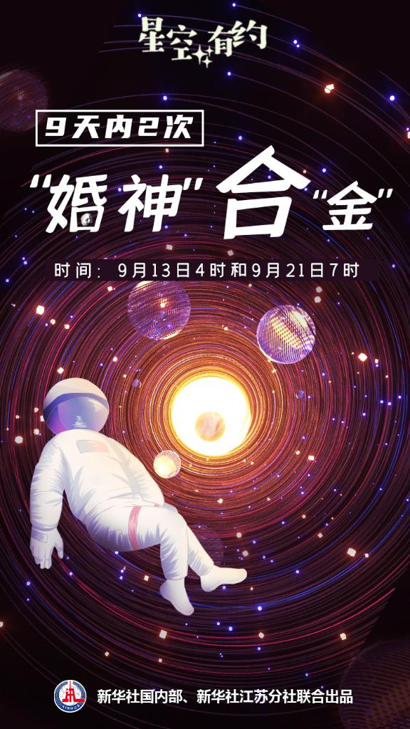 新华社南京9月11日电(记者王珏玢、邱冰清)中国科学院紫金山天文台科普专家介绍,9月13日4时和9月21日7时,小行星带中最大的小行星之一婚神星将两次与金星相合。婚神星合金星是怎么回事?9天内出现2次婚神星合金星常见吗?天文科普专家为您揭秘。