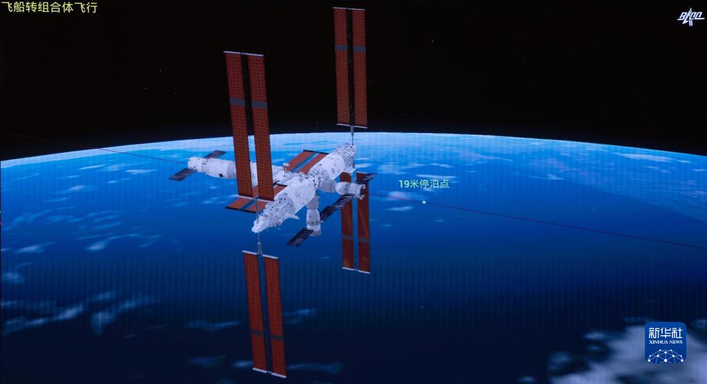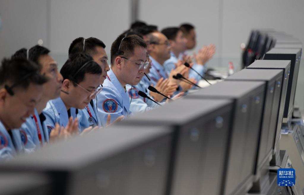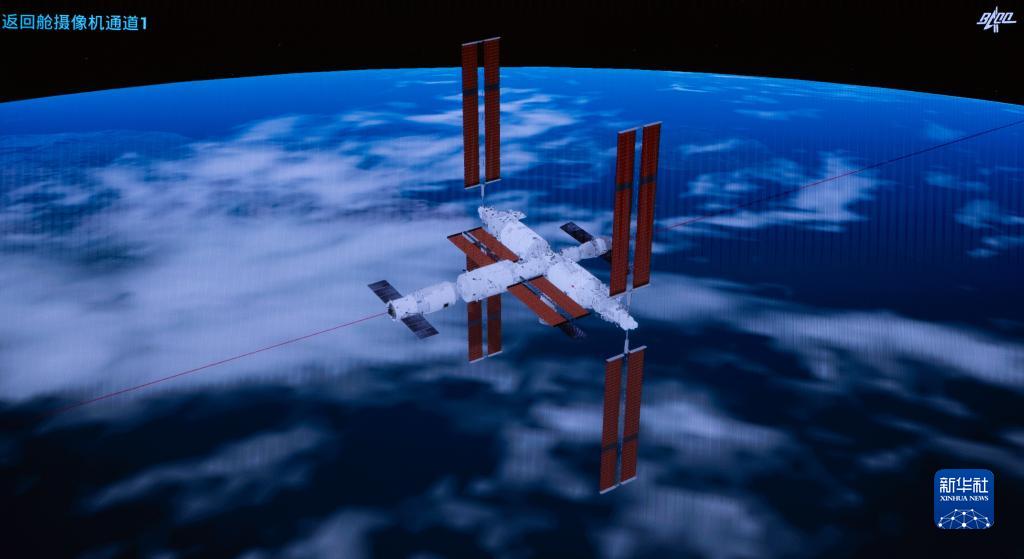10月26日在北京航天飞行控制中心拍摄的神舟十七号载人飞船和空间站天和核心舱前向端口对接过程的画面。 新华社记者 金立旺 摄
