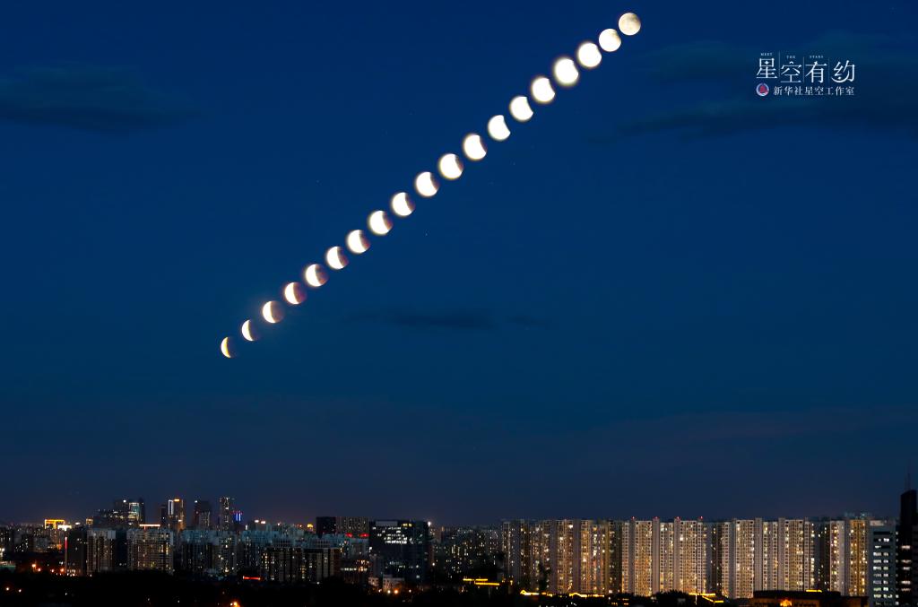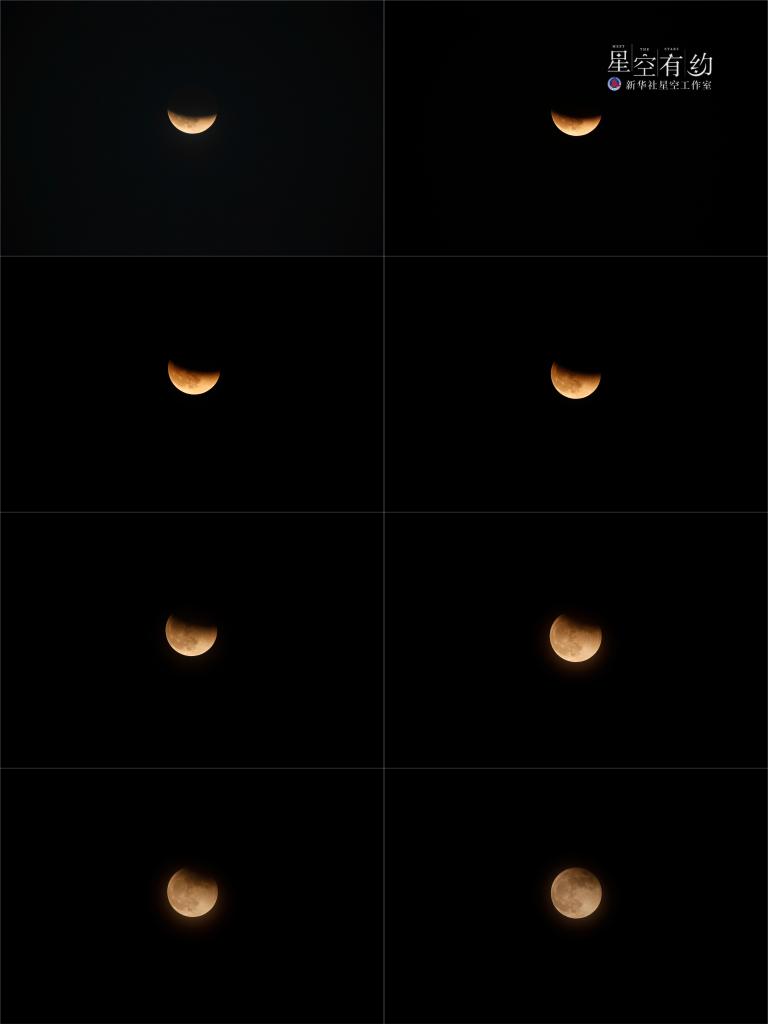 这是2021年11月19日在韩国首尔拍摄的月偏食过程(拼版照片)。新华社记者王益亮 摄