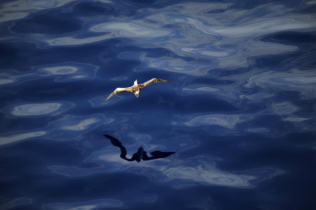 一只海鸟在赤道无风带海面飞翔。新华社记者 张建松 摄