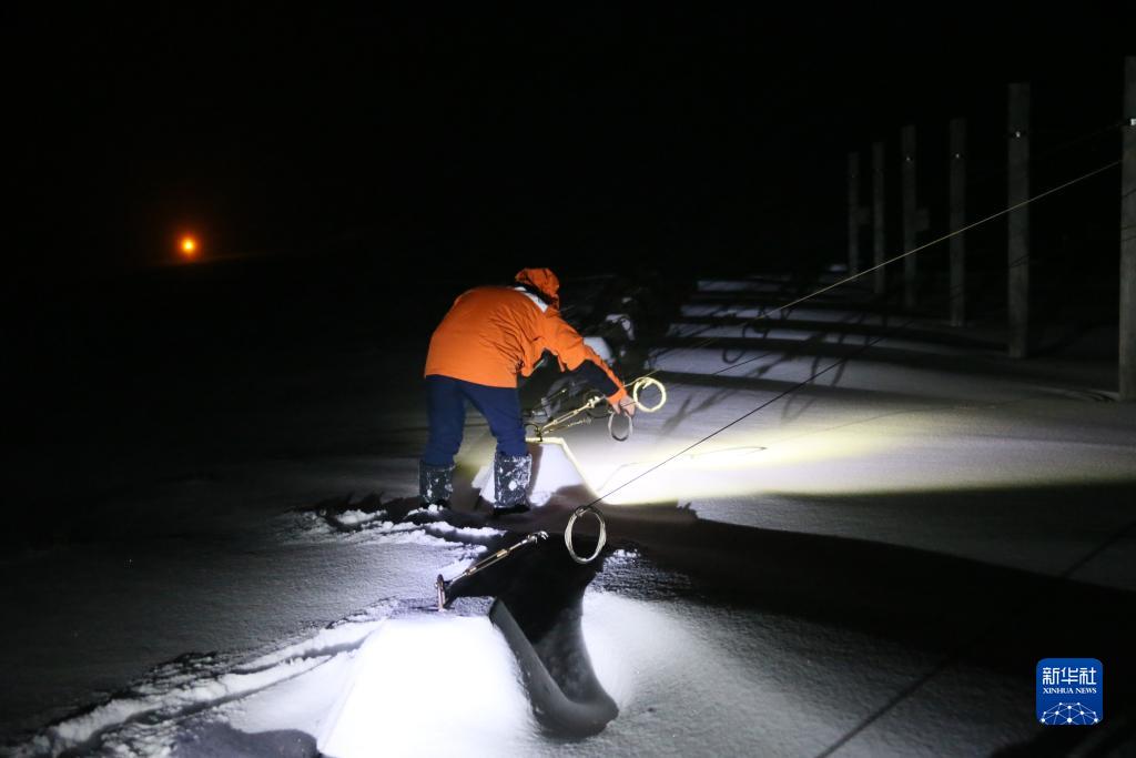 11月12日,在挪威新奥勒松,中国极地研究中心副研究员李斌外出检查设备。新华社记者 张玉亮 摄