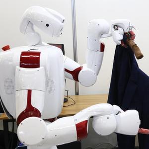 在日本早稻田大学的展位上,一个正在往衣架上挂衣服的机器人吸引了众多参观者驻足。研究人员告诉记者,挂衣服对人来说是小事一桩,但对机器人来说很难,因为当机器人抓住衣服的一部分时,无法知道下一个瞬间衣服会变成怎样的形状。借助深度预测学习技术,他们解决了这个难题。