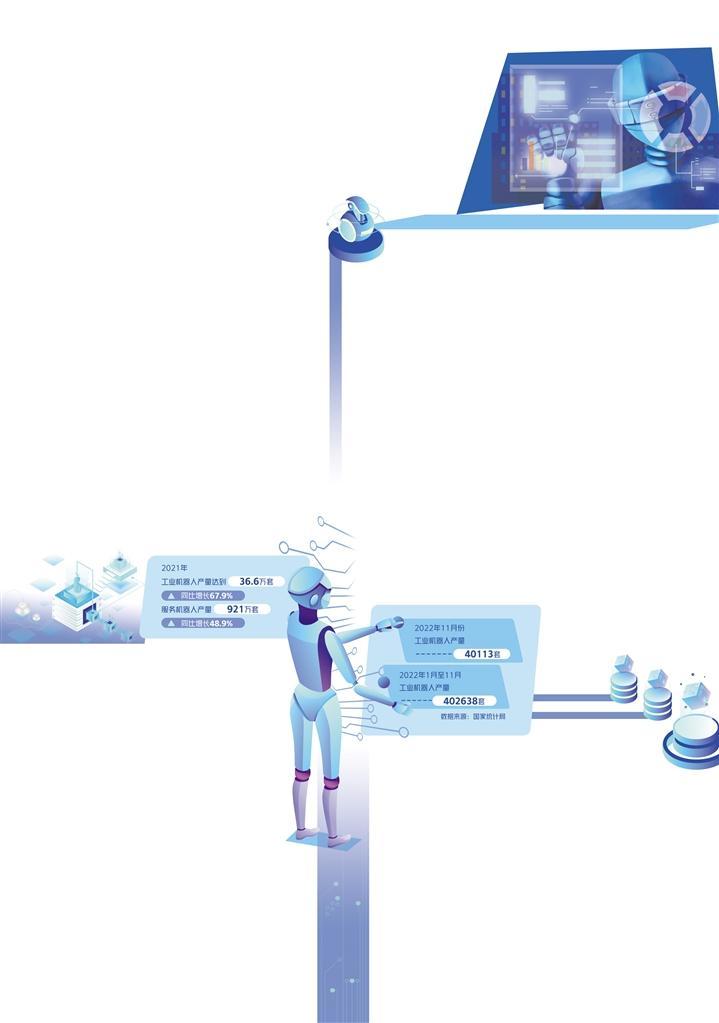 曲道奎(机器人技术国家工程研究中心副主任):国家统计局数据显示,2021年我国工业机器人产量达到36.6万套,同比增长67.9%。2021年我国服务机器人产量921万套,同比增长48.9%。
