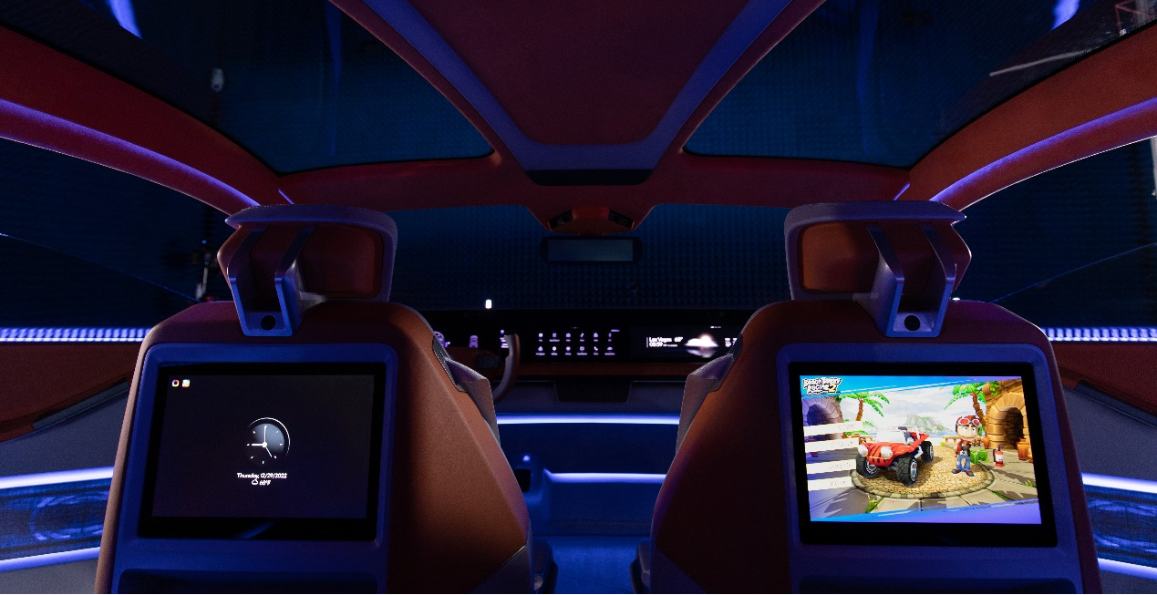 无论是坐在前排参加视频会议的专业人士,还是在后座与朋友一起进行在线游戏的孩子,乘客在未来的出行中都不会错过任何美好时光。当车辆停泊时,驾驶员可以通过55英寸前排显示屏在驾驶座上观看流媒体内容或进行在线游戏。配备5G连接和协作应用程序的汽车可以让每个人在旅行中保持连接。