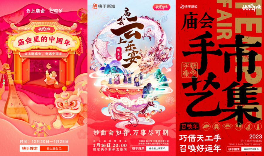 年味传承历久弥新,离不开一系列预示吉祥美好的传统年俗。12月30日起,快手推出持续一个月的云上逛庙会活动,邀老铁一起逛手艺市集迎接兔年,看民俗巡演舞动新春,听妙趣书场巧谈年景,赏云上乐宴丝竹之音,看区域春晚欢庆新年,一站式感受好逛、好看、好听、好玩的新春盛宴。