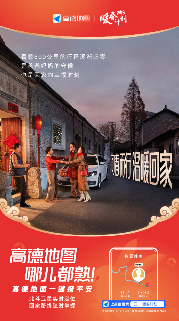 今年“暖春计划”主题为“向春而行 温暖回家”。高德地图将联合全国各地交警、交通管理机构等部门,在高德地图App开通交通号,实时发布权威的出行信息,帮助公众在春运期间平安出行。