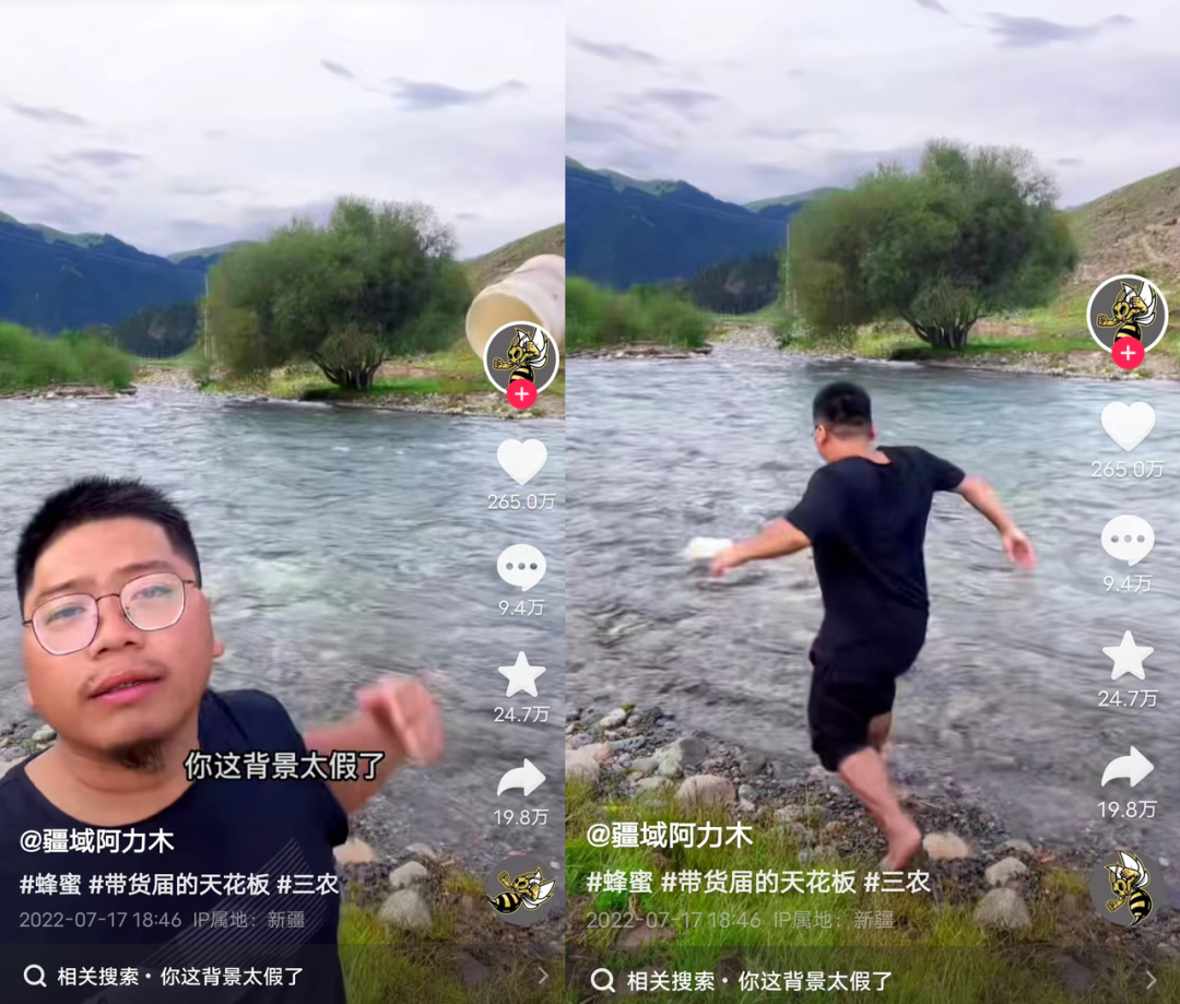 这条视频突然在抖音爆火。“你这背景太假了”成了一个热梗。“疆域阿力木”登上了抖音涨粉榜第二位,一周涨粉160.2万。