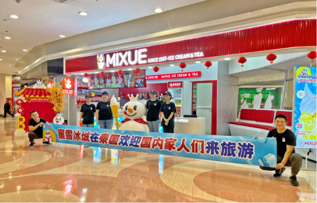 蜜雪冰城在泰国欢迎国内家门人来旅游