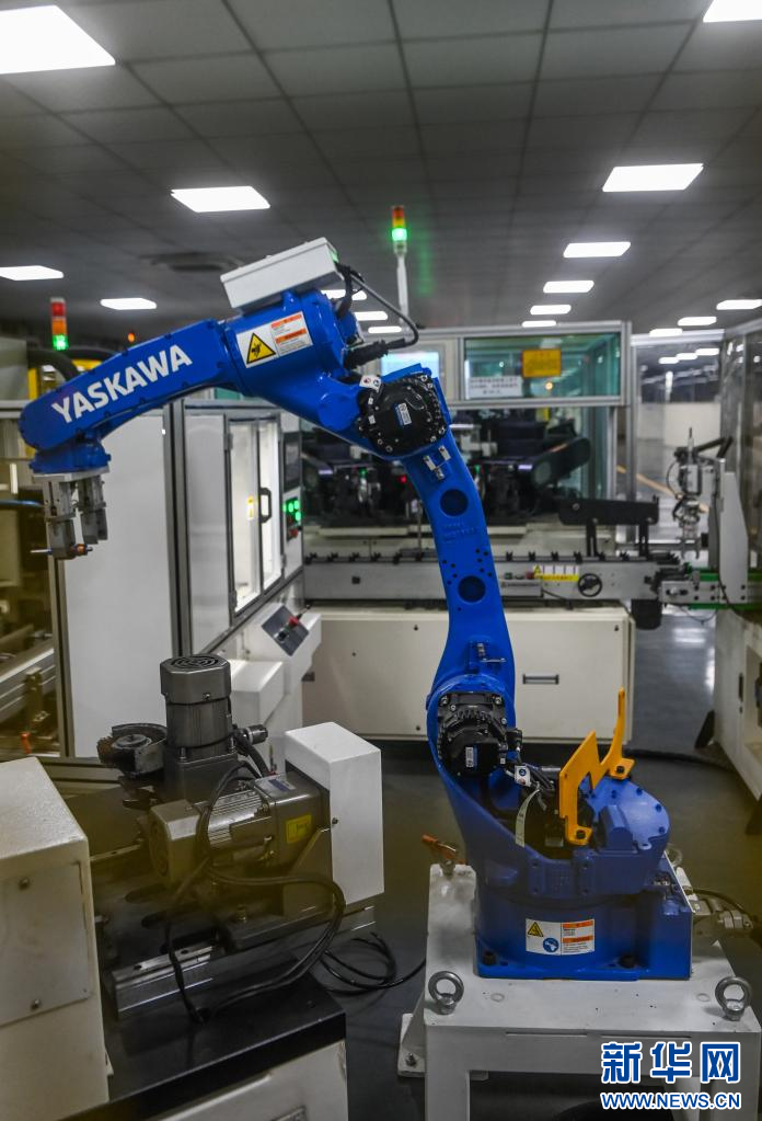 2月7日,在位于诸暨市姚江镇的浙江露通机电有限公司数字化车间内,自动化生产线上的机械臂正在运行中。该公司已完成全自动化流水线12条,每条流水线由12人操作减少为1人操作,极大提高了生产效率和良品率。
