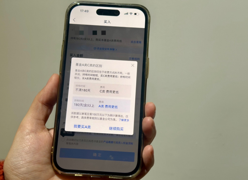 事实上,蚂蚁财富在探索交易链路费率透明化上做了一系列动作。去年初,蚂蚁财富就上线了对A类、C类基金费率差异的提示,用户在购买基金时可以更直观了解,例如有些C类基金持有不满180天,费用更低,而超过这一时间,A类基金费用更低。