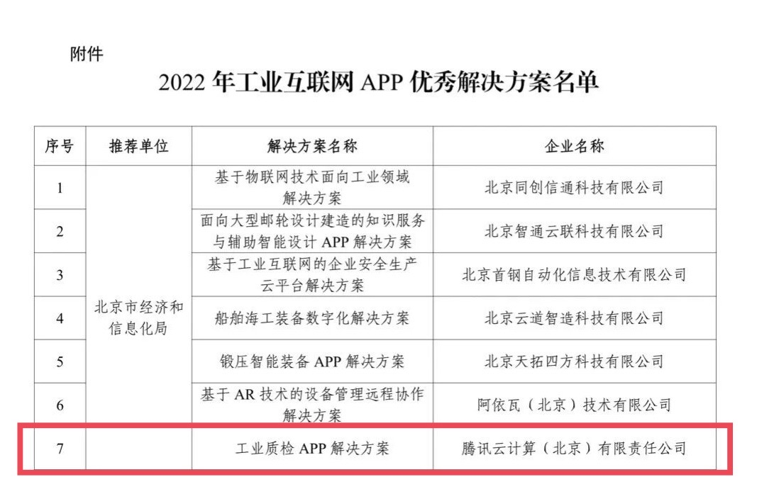 据悉,申报解决方案需满足对行业和企业提质增效、转型升级发挥明显支撑引领作用;拥有自主知识产权等要求。入选的解决方案在项目实施创新性、产学研用协同创新能力、项目可推广性等维度都经过层层筛选,最终确定腾讯云智能工业质检等方案为2022年工业互联网APP优秀解决方案。未来,各地也将在政策、资金、资源配套等方面加大对入选项目的支持力度,推动工业互联网APP的生态建设,以及解决方案在各地方、各行业的应用推广。
