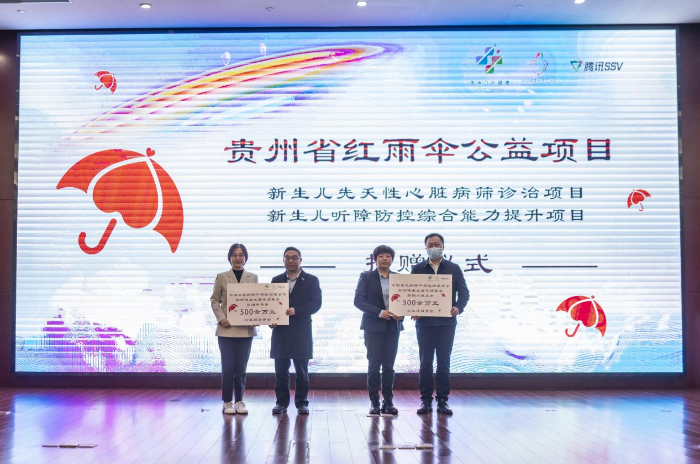 启动仪式现场,为支持贵州省毕节市和六盘水市实施新生儿先天性心脏病筛诊治和新生儿听障防控综合能力提升工作,中国出生缺陷干预救助基金会和腾讯集团向毕节市和六盘水市捐赠共计800余万元的公益项目资金和公益项目设备。助力妇幼重点疾病的筛查、诊断、治疗、随访全流程数字化智慧服务,织密“筛诊治一张网”,提高中西部妇女儿童健康水平。