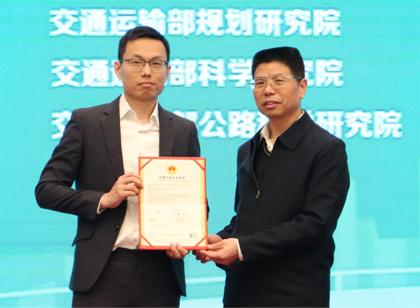 交通运输部科学研究院副院长陈济丁为美团颁发认证证书