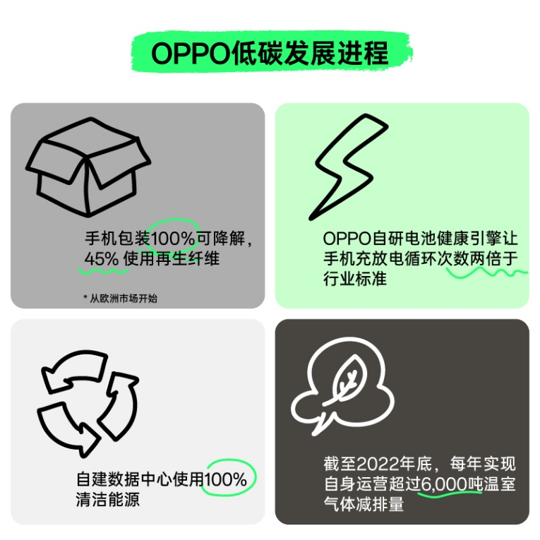 在不断思考如何给用户带来更极致的产品体验的同时,OPPO也希望用户能切实地使用上更绿色的产品。为此,OPPO把可持续发展理念融入产品全生命周期管理,最大程度降低对环境的影响。