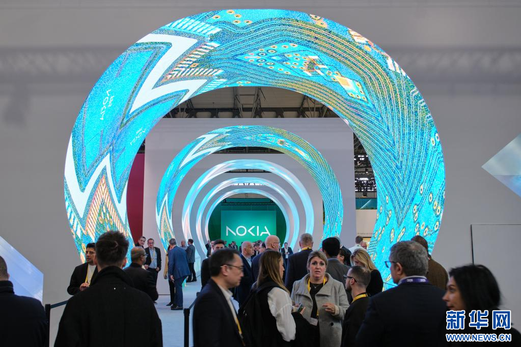 这是2月28日在西班牙巴塞罗那举行的2023世界移动通信大会上拍摄的诺基亚展台。
