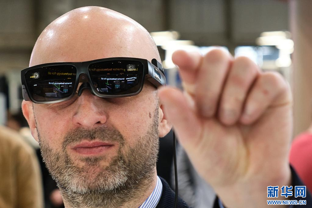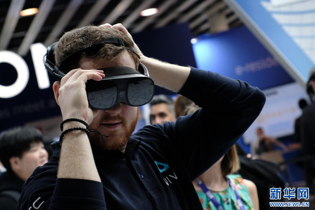2月28日,一名男子在西班牙巴塞罗那举行的2023世界移动通信大会上体验虚拟现实技术。