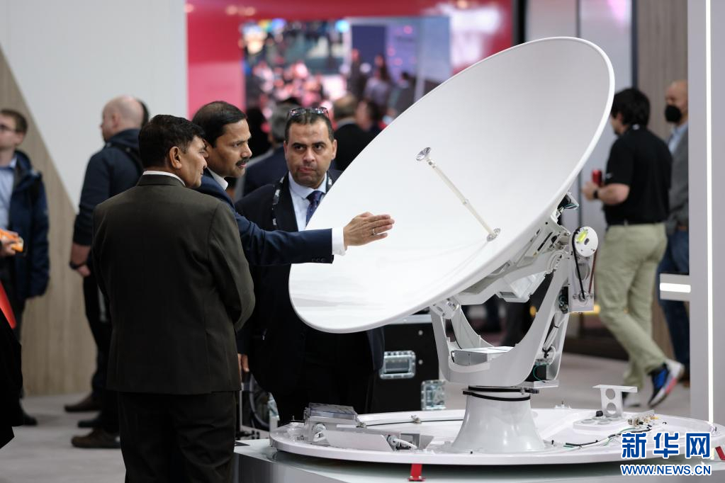 2月28日,人们在西班牙巴塞罗那举行的2023世界移动通信大会上参观卫星设备。