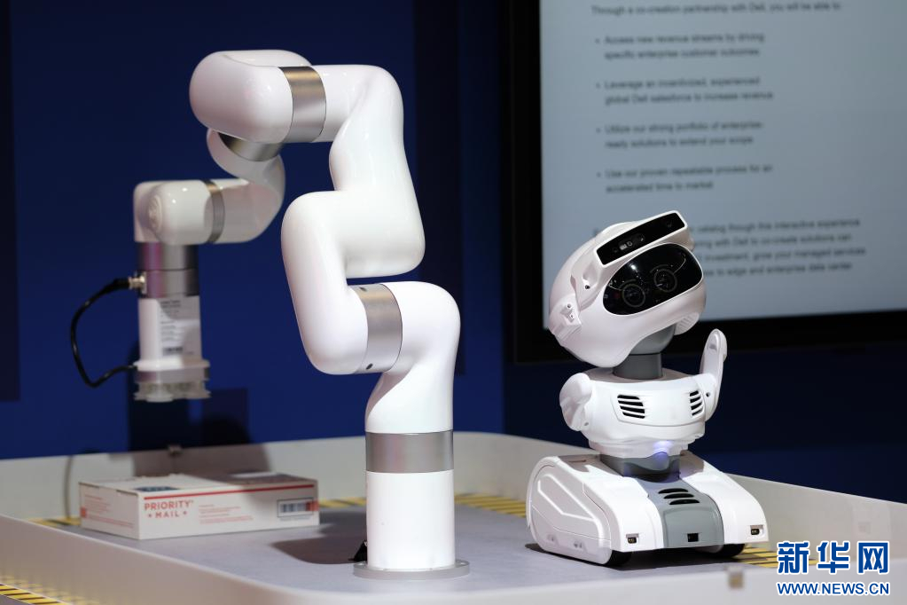 这是2月28日在西班牙巴塞罗那举行的2023世界移动通信大会上拍摄的智能机器人和机械臂。
