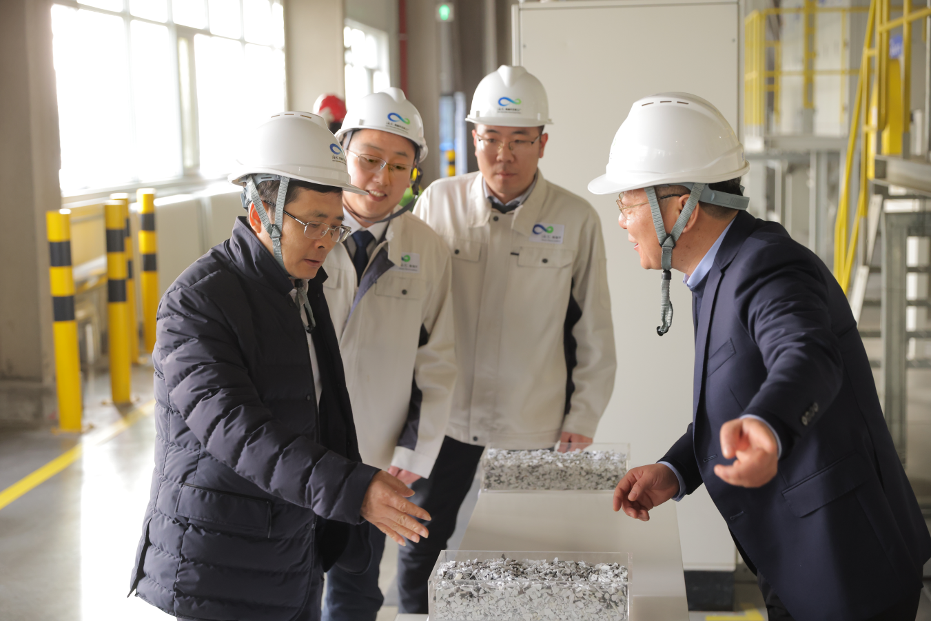 全国人大代表周云杰(左一)在海尔再循环互联工厂调研