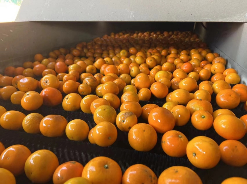 图为武鸣沃柑丰收后,新农人用机器自动清洗分级