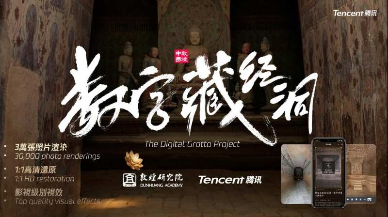对于已经消失的文化遗产,游戏科技同样能实现数字复现,助力文化代代相传。4月即将上线的“数字藏经洞”项目,将基于敦煌研究院的文物数字化技术和腾讯互娱的游戏技术,复现出敦煌莫高窟藏经洞及其室藏6万多件文物的场景,用户可以云上游览1:1高清还原的莫高窟1600多米外崖面和藏经洞洞内壁画,身临其境经历藏经洞从洞窟开凿、室藏万卷到惊现于世、文物流散的前世今生。