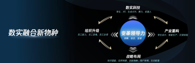 为帮助企业拥抱数实融合时代,他在现场提出了杨五环2.0模型“数实融合新物种”。从数实科技、组织升级、战略布局、产业重构、变革领导力五个切入点,给到企业新路线图。