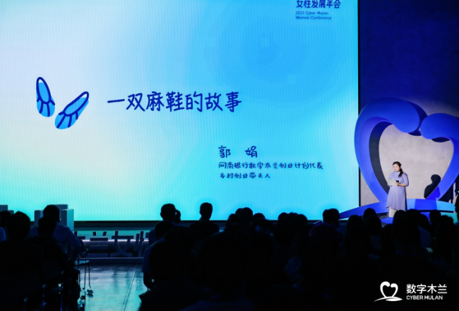 作为网商银行女性创业者代表,郭娟在大会上分享了自己的创业经历。毕业后嫁到了甘肃,郭娟跟着婆婆从零开始编织手工麻鞋,因研发出“防水麻鞋”,淘宝店一炮而红。2018年,郭娟萌发了在各个景区开线下实体店、提升手工鞋销量的想法,但开店需要5万元、10万元不等的押金,借助网商银行的贷款资金,她开了线下店,几年的发展过去,线下店的营业额已经超过淘宝店。
