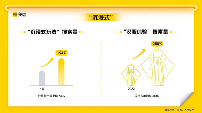 其中,以“汉服体验”为代表的新型沉浸式游玩方式,受到越来越多的年轻人青睐。美团数据显示,截至23日,“汉服体验”的搜索量同比去年增长280%,西安、洛阳、苏州位居搜索热度前三。