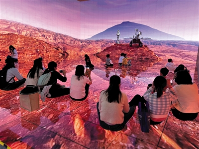 2023年“中国航天日”系列展览上,参展者通过体验沉浸式航天元宇宙感受“登陆”火星。新华社记者 吴慧珺 摄