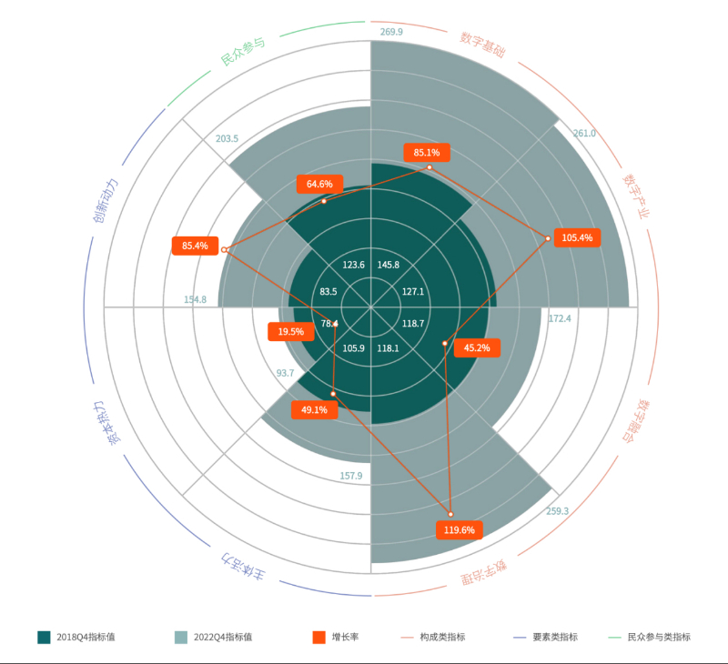 图为2018Q4-2022Q4中国数字经济发展指数各指标变化图