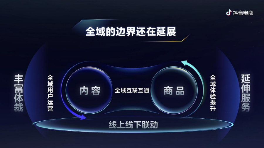 在全域兴趣电商环境中,短视频和直播组成的内容场景以及抖音商城、搜索、店铺组成的货架场景,都蕴含很大流量。其中,内容与商品是流量的发动机,抖音电商通过产品、策略让所有内容与商品平滑连接,内容场与货架场的流量实现互联互通,提升流量效率,同时做好用户运营和用户体验,推动生意“飞轮增长”。