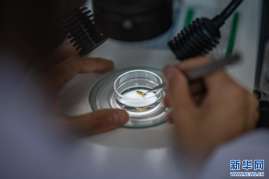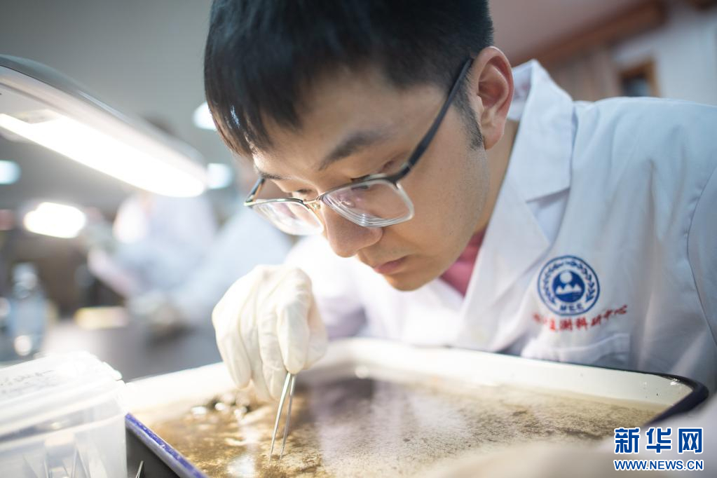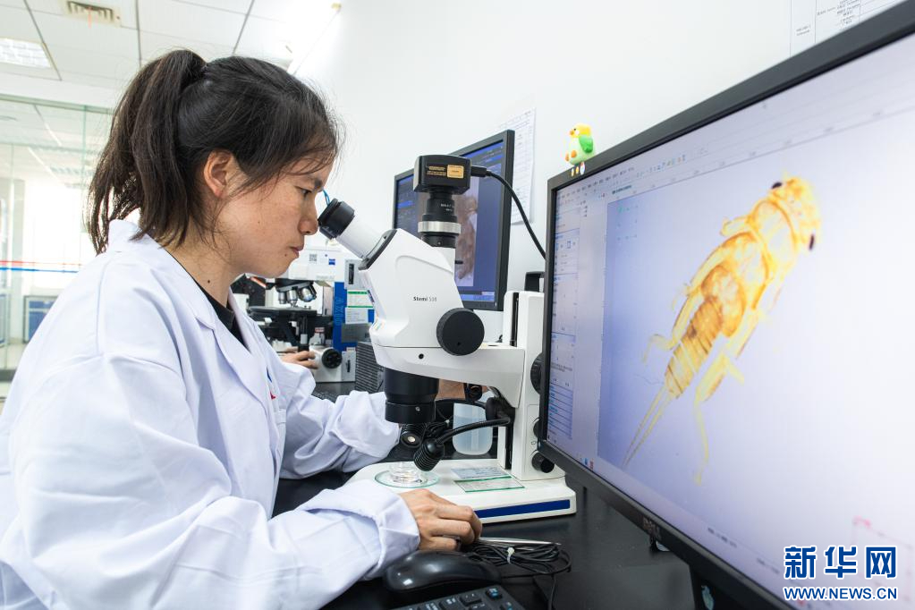 5月15日,在长江流域生态环境监督管理局实验室,监测人员周明春对采集到的底栖动物样品进行鉴定。