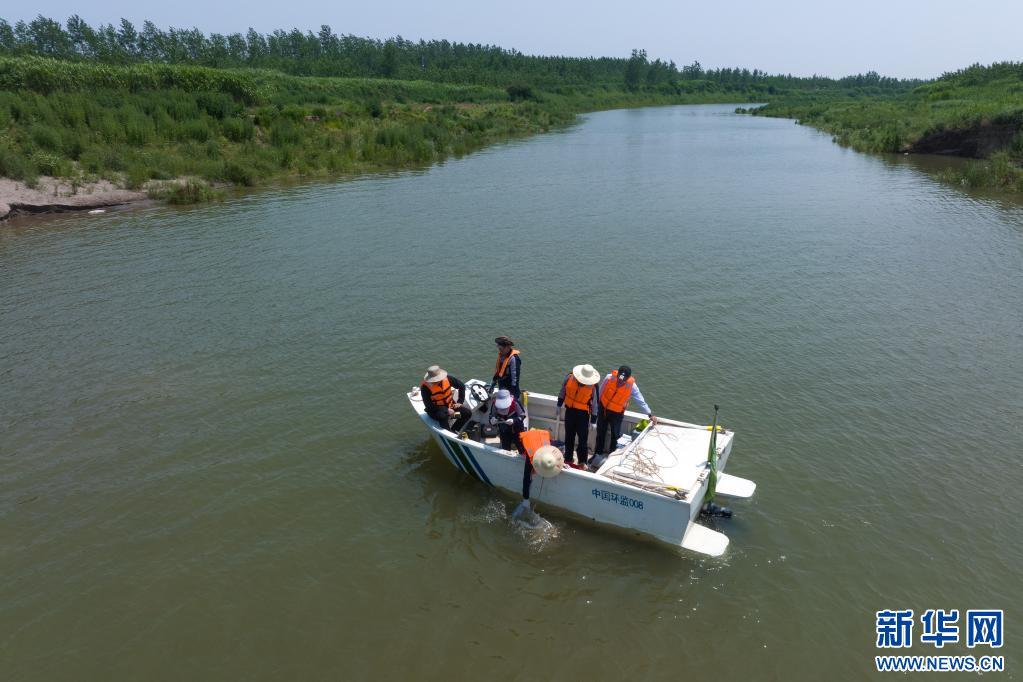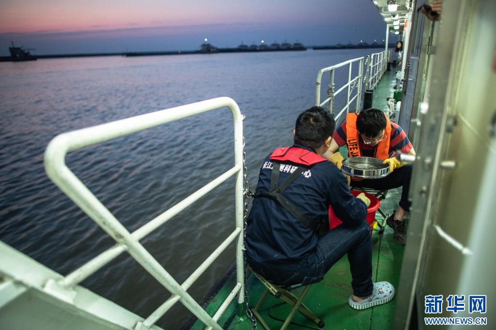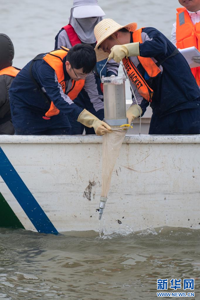 5月13日,监测人员熊少凯(左)、韩堂瑞在采集浮游动物样本。