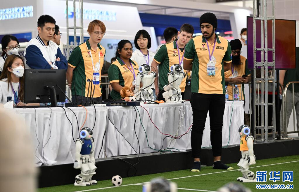 5月20日,观众观看机器人足球标准平台组比赛。 当日,2023亚太机器人世界杯天津国际邀请赛在国家会展中心(天津)开幕。本次大赛作为第七届世界智能大会的重要组成部分,完全采用线下模式,包含机器人足球、智能驾驶、无人机赛等六大赛项,吸引来自国内外的700余名选手参赛。 新华社记者 李然 摄pagebreak
