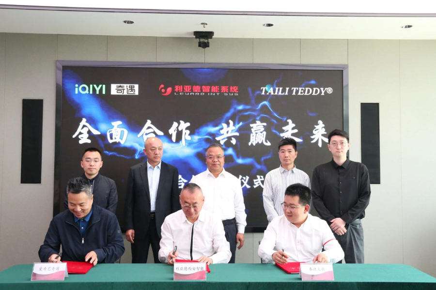 5月22日,青岛梦想绽放科技有限公司(以下简称“爱奇艺奇遇”)、利亚德(西安)智能系统有限责任公司(以下简称“利亚德西安智能”)与海南省泰迪文投科技有限公司(以下简称“泰迪文投”)三方战略合作签约仪式在利亚德集团西北总部举行。依据协议,三方将立足各自优势,在技术、产品与市场等多方面通力合作,并围绕以文旅等为代表的典型场景展开数字化的探索与布局。爱奇艺奇遇总裁刘志刚、利亚德西安智能执行董事刘剑宏、泰迪文投执行董事孙振华等出席仪式。